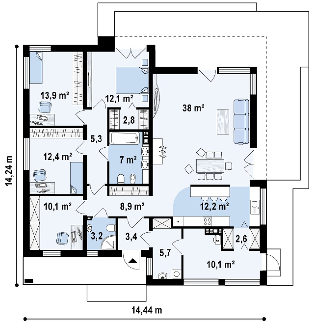 Разработка Zx103 bG представляет вариант проекта Zx103 без гаража. В данной версии полностью изменился фасад здания.